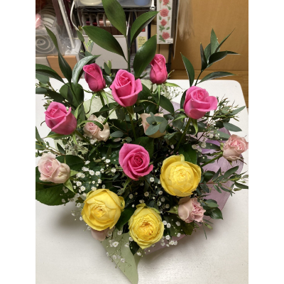 バラをメインに使用したアレンジフラワー1個につきバラは15本使用