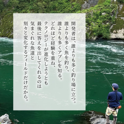 それでいてベースのホログラムと銀粉により奥行きのある輝きを表現。視認性を高めたピンクとチャートで定番のブルーギルカラーに仕上げました。