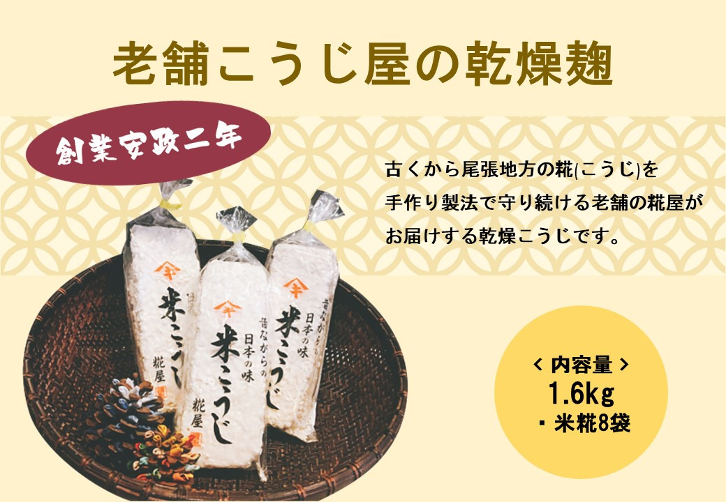 【創業安政二年】老舗こうじ屋の乾燥麹1.6kg(米糀8袋)