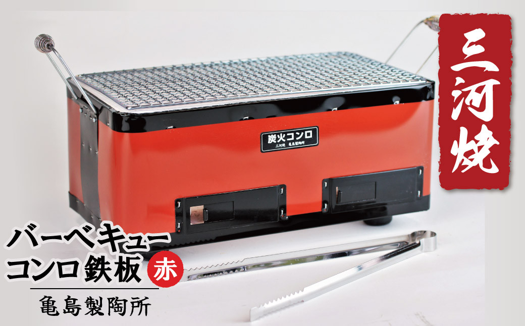 BBQや災害時の防災グッズとして備えておくと便利! バーベキューコンロ鉄板(赤) 網 アミ 火ばさみ BBQ キャンプ アウトドア 焼肉 焼き魚 珪藻土 断熱性 保温性 災害 備え さんま H023-048