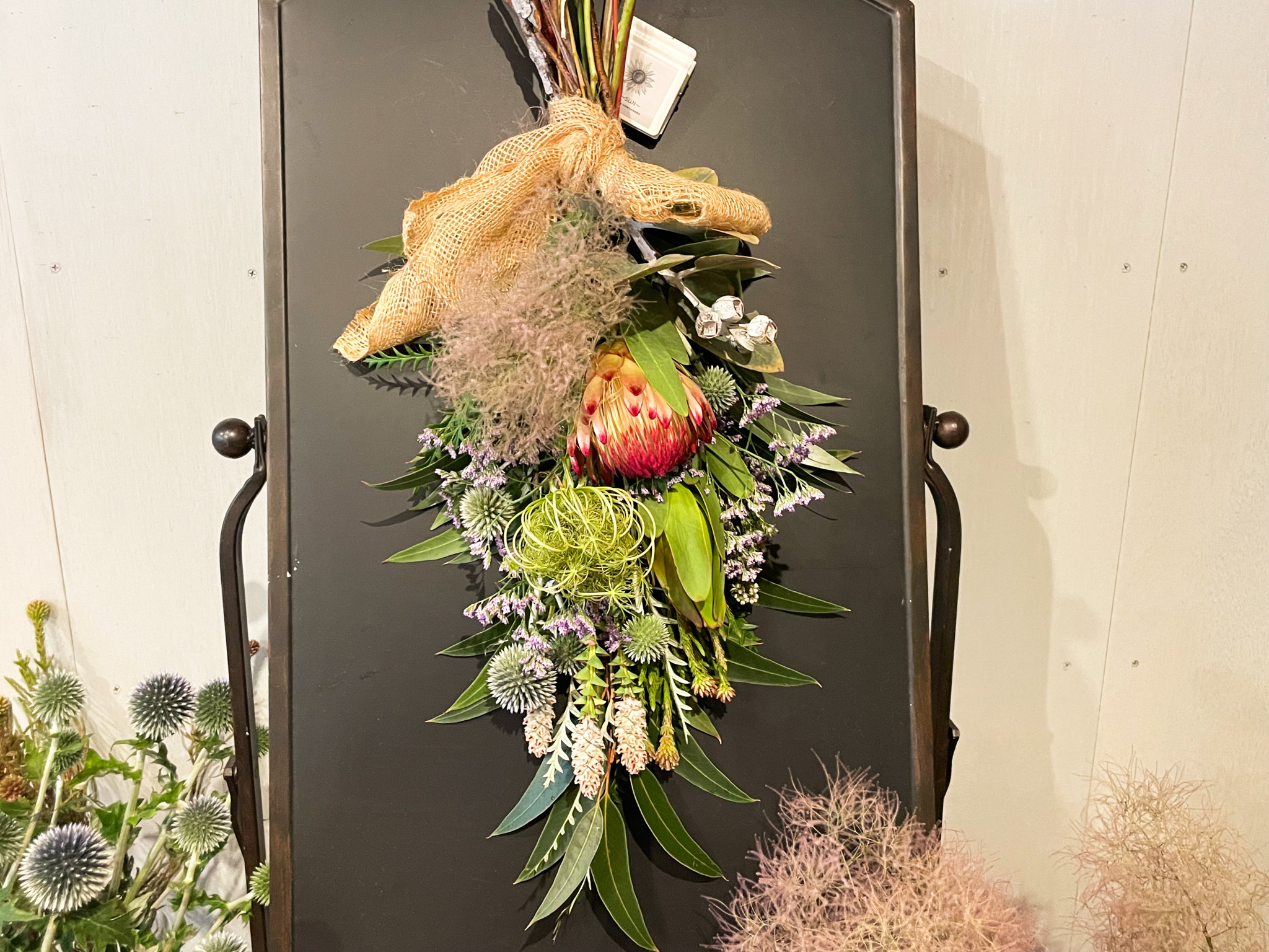 こちらのお店には季節のお花や海外の珍しいお花までたくさんのお花で溢れておりまして、ご注文の時期に合わせて、素敵なスワッグに仕上げております。
