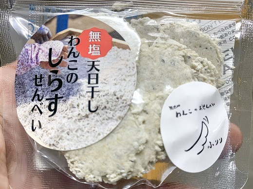 わんちゃんのために無塩で茹でたしらすを、おせんべいにしました。