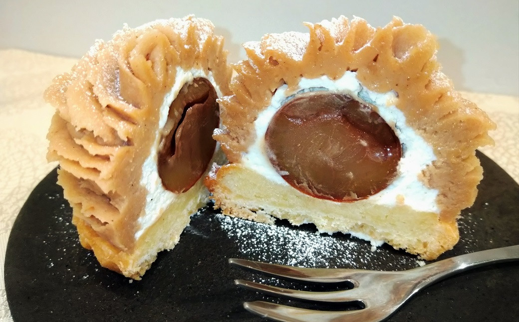 みりんで風味付けされた栗の甘露煮がとてもやさしい味わいで美味しかったです。ペーストもクリームも甘さ控えめで栗の味がしっかり感じられました。土台のタルトはどっしりと若干重めですが、がバター塩っぱくてこれまた好みです。普通のモンブランと見た目も違い、かわいい!と妻も喜んでいました。本当に美味しかったです!リピートしたいと思っています!!