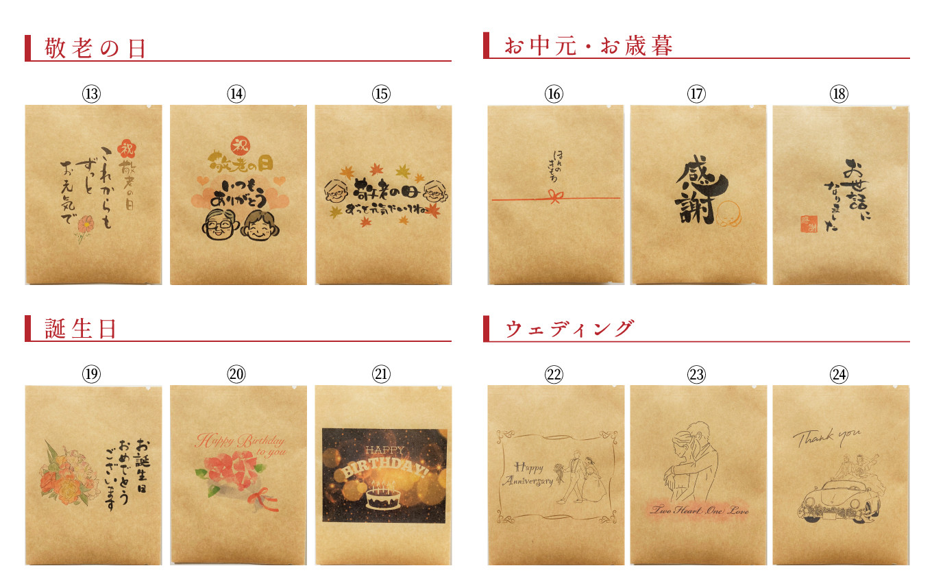 母の日やお中元、結婚祝いなど様々なシーンで活用できるパッケージデザインの中から、お好きなデザインが選べるギフト向けの返礼品です。ピッタリのデザインが見つかること間違いなし!