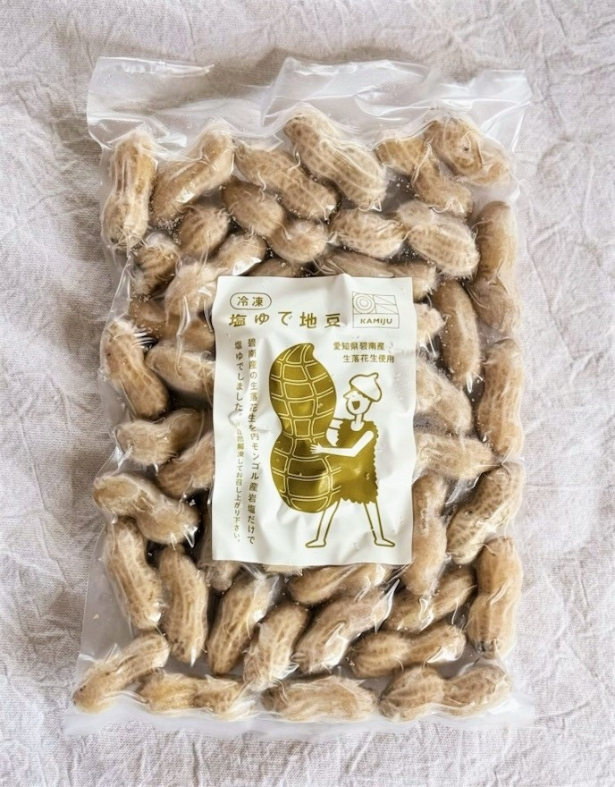碧南産(へきなんし)の採れたて生落花生をモンゴル産岩塩で塩ゆでして冷凍しました。