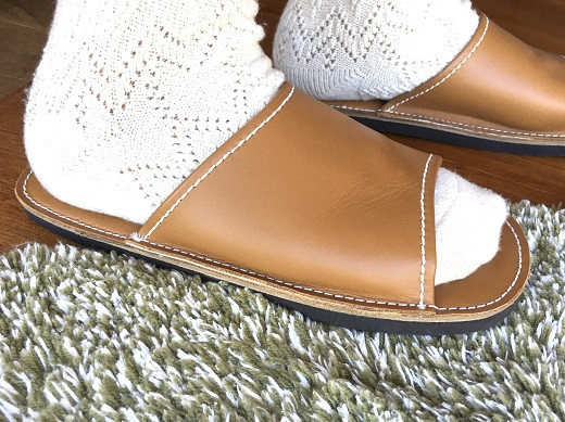 熟練の靴職人が本革で作った、夏は蒸れずに涼しく、冬は暖かいスリッパ。