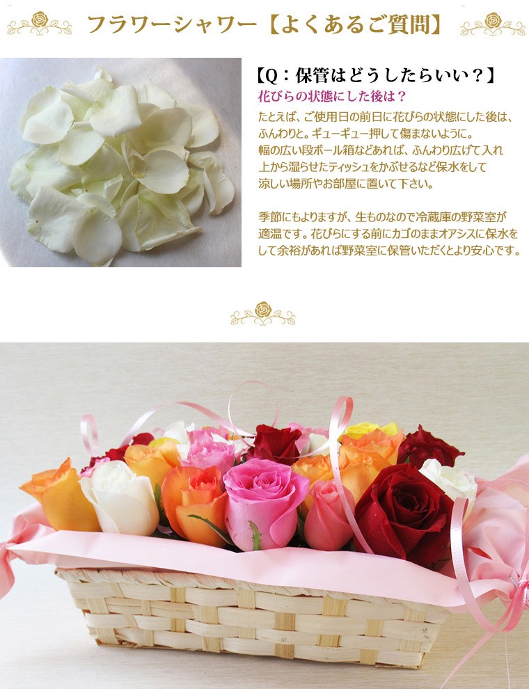| 容量 | ・生花バラの花首50輪 ・取扱説明書 【サイズ】 高さ:約13cm(※7cm) × 縦幅:約22cm(※20cm) × 横幅:約35cm(※29cm) ※()内はカゴのサイズです。 |