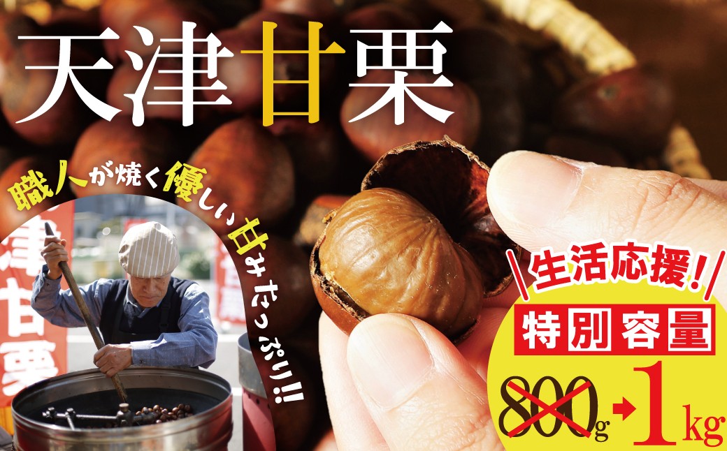 配送当日に焼いた天津甘栗のみお届け! 【特別容量 800g⇒1kg】 ( 生活応援 ) この道50年の職人が焼く、やさしい甘みたっっっぷり!「天津甘栗」 1kg 焼きたて 栗 くり 栗爪 殻付き お菓子 おつまみ 人気 高リピート 小分け 栗ご飯 栗きんとん 甘露煮 感謝を込めて 碧南市 H045-106