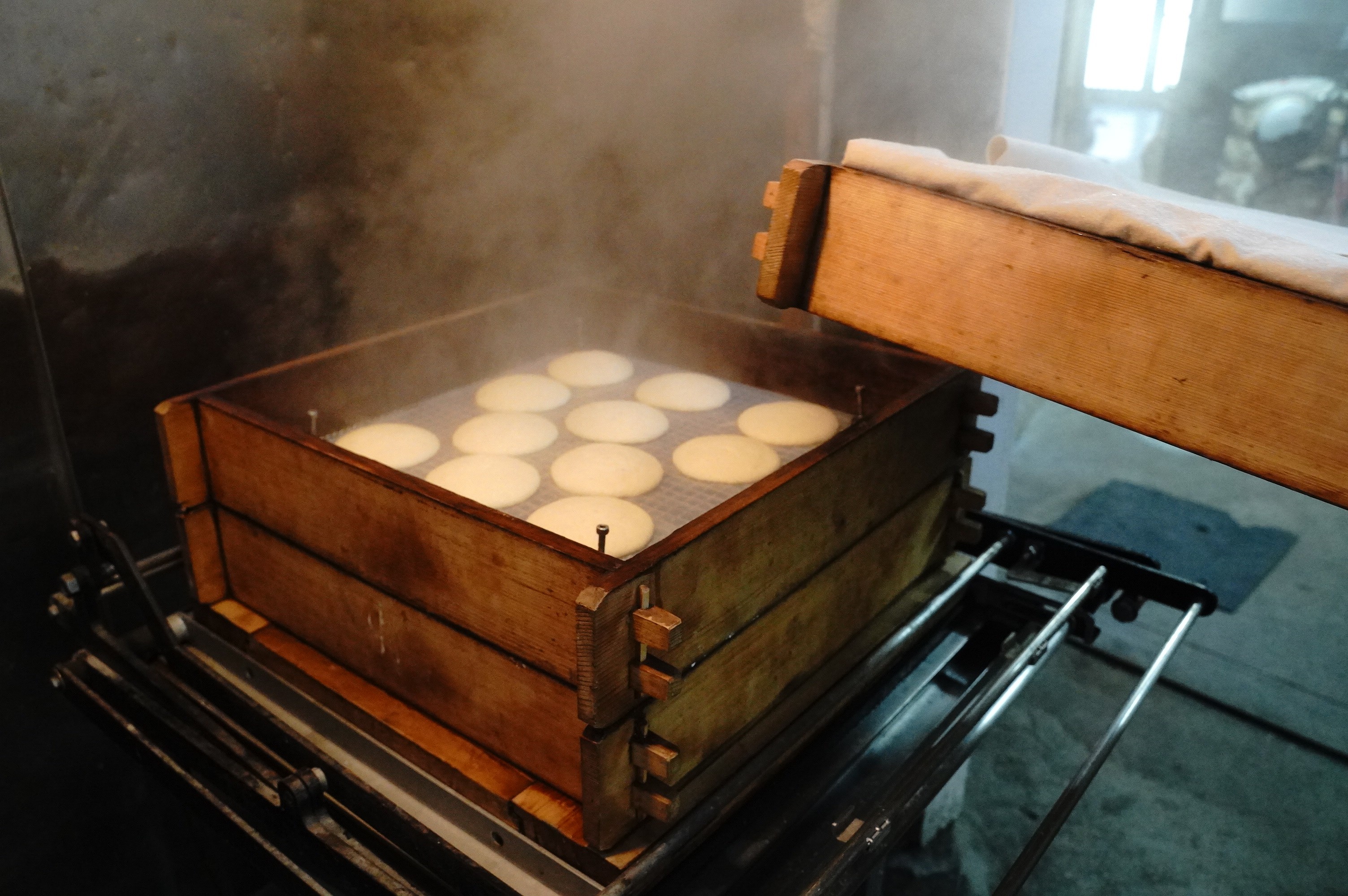 蒸気がモクモク、せいろで3分間蒸します。