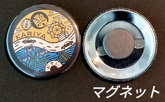 刈谷市のマンホール絵柄をあしらったグッズです。刈谷の夏を彩る万燈祭、刈谷ハイウェイオアシスの観覧車、名産品の小玉スイカ、刈谷市の花カキツバタなどがデザインされています。