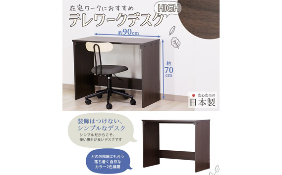 No.187 組み立て式 テレワークデスク(High) DE-10(ダークブラウン) / 在宅ワーク 机 愛知県