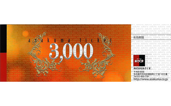 | 容量 | あさくまオリジナルお食事券3000円分 お好きなメニューをお選びください。 ・お食事券は「ステーキのあさくま 刈谷店」にてランチタイム・ディナータイムでご利用頂けます。 ・お送りするお食事券は1枚です。 ・お食事券として金額の範囲であればどのメニューにもご利用いただけます。 ・寄附のお申込みでは、サービスのご予約は確定いたしません。お食事券到着後、必ず食事券に記載の電話番号へご連絡いただき、事前の調整・予約をお願いいたします。 ・寄附金の決済・入金を確認後、順次特典提供事業者よりお食事券を送付いたします。 ・ご利用予定日が決まっている場合は、必ず1カ月前までの決済・入金をお願いいたします。 ・当日は、送付いたしましたお食事券を必ずご持参ください。お忘れになられた場合、サービスをご利用いただけない場合がございます。 ・紛失・破損によるお食事券の再発行は対応いたしかねます。ご了承ください。 ・本券の転売・換金並びにつり銭はご容赦願います。 |