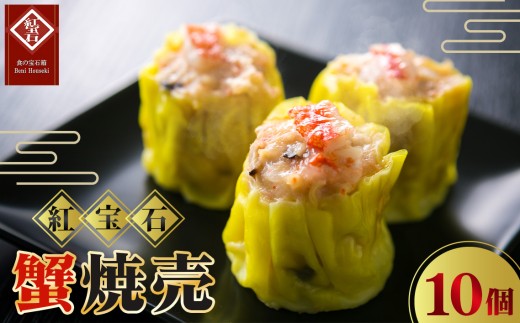 蟹身たっぷりで華やか、大きめサイズで食べ応え抜群! 蟹焼売10個入り / 紅宝石 焼売 蟹焼売 カニ入り 手作り 大きめサイズ ジューシー 電子レンジ 調理済み 点心 本格中華 冷凍食品 家庭用 お取り寄せ ギフト 愛知県 No.422