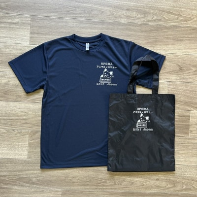 ネイビーのドライTシャツは速乾性があり、トートバッグはまちがあります。