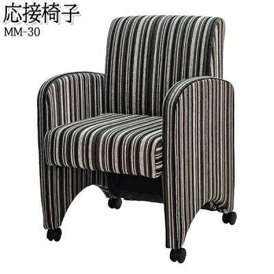 <国産> 応接椅子 キャスター付チェア MM-30 布張ストライプ【1483537】
