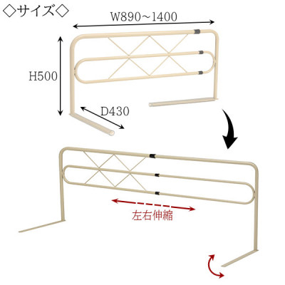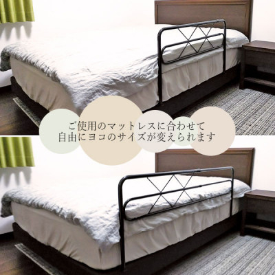 ・固定式の簡易の商品はありますが、さまざまなベッドに対応する、左右伸縮可動のスライド式はベッドの長さ・奥行きサイズ89~140センチに調節・固定できますのでさまざまなベッドに対応します。