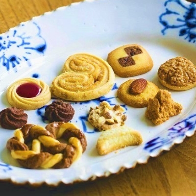 手作りをモットーに仕上げた、7種類(プレッツェル,アーモンド,チョコミックス,ベリージャム,ココナッツ,カカオ,ピスタチオ)のビスケット。バターの風味をしっかりと味わえるビスケットや、軽い食感のメレンゲなどさまざまな味わいが楽しめます。