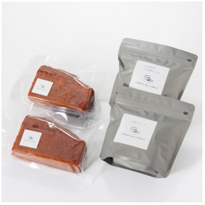 | 容量 | ■お礼品の内容について ・コーヒー豆(小箱ブレンド・インドネシア マンデリン)[100g×2種] 原産地:コロンビア、グアテマラ、タンザニア、ブラジル、インドネシア/加工地:愛知県安城市 賞味期限:加工後から3ヶ月 ・安城産いちじくパウンドケーキ[150g×2p] 製造地:愛知県安城市/加工地:愛知県安城市 賞味期限:製造日から14日 ■原材料・成分 ◎スペシャルティコーヒー豆 小箱ブレンド(コロンビア、グアテマラ、タンザニア、ブラジル)、インドネシアマンデリン ◎焼き菓子 ・安城産いちじくとキャラメルのパウンドケーキ(小麦粉、無塩バター、卵、甜菜糖、洋酒漬けいちじく、生クリーム、ベーキングパウダー、塩) |