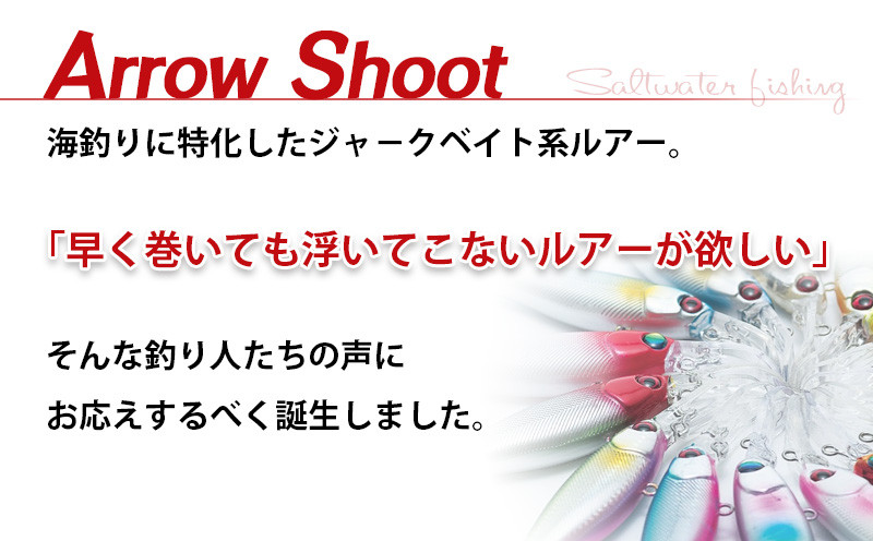 「早く巻いても浮いてこないルアーが欲しい」そんな釣り人たちの声にお応えするべく誕生したARROW SHOOT。