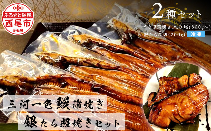 うなぎ専門店のこだわり 三河一色鰻(大サイズ)蒲焼き5尾+銀たら照焼き5切れセット・F028