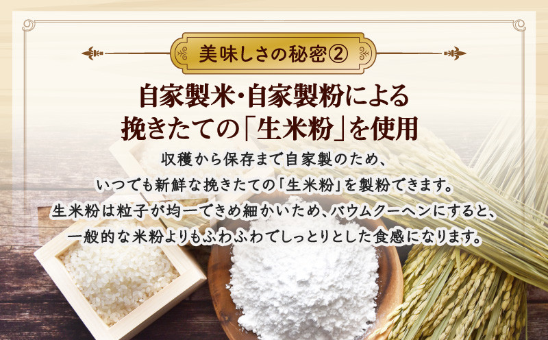 生米粉は、粒子にばらつきが少なくきめ細かい米粉のため、バウムクーヘンにすると、一般的な米粉よりふわふわでしっとりとした食感になります。
