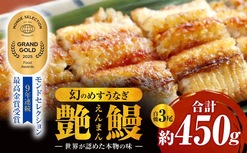 世界が認めた「三河一色産 幻のめすうなぎ艶鰻」。お店の味をご自宅でも楽しめます。 三河一色産 幻のめすうなぎ艶鰻 白焼3尾・T121