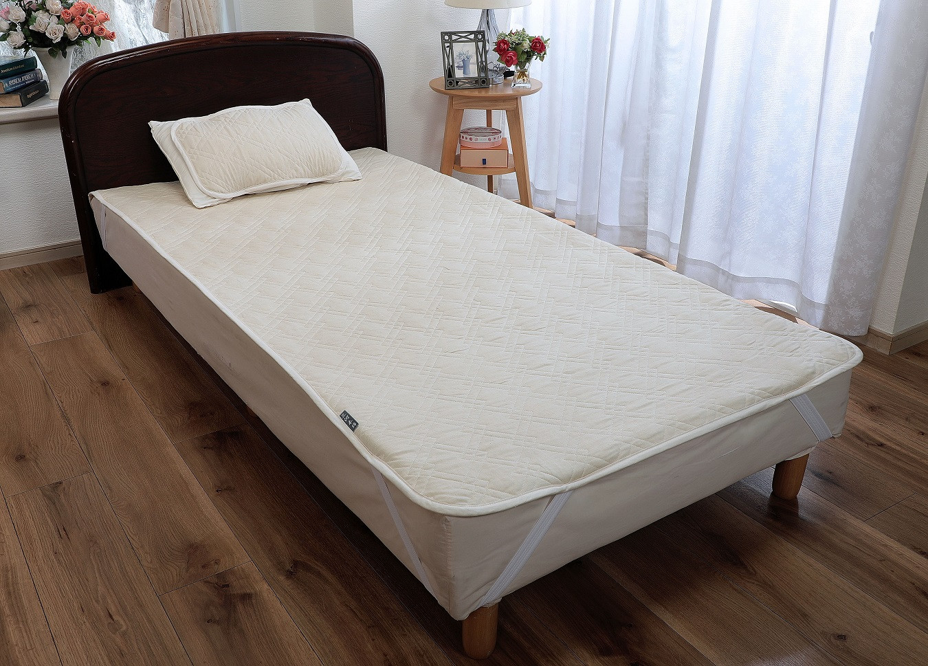 汗を吸い取りやすく、ムレにくく、汗ばむ夏におすすめの綿わた敷パッドです。