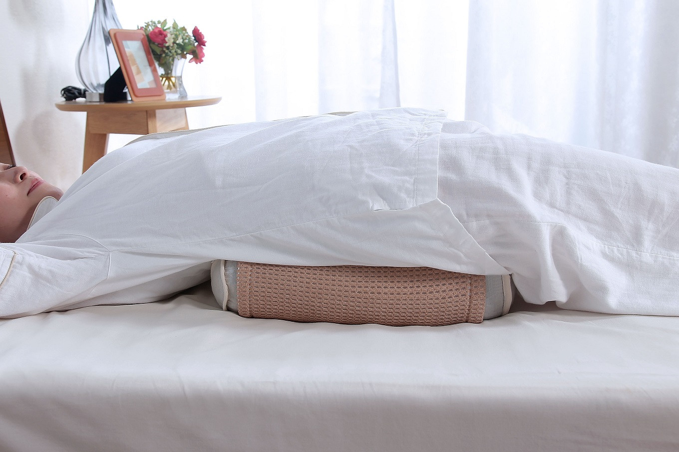 緊張しがちな頸椎(けいつい)にこの枕を当てて1日に5分程度ストレッチをすることにより、首、肩まわりの不快感を和らげます。