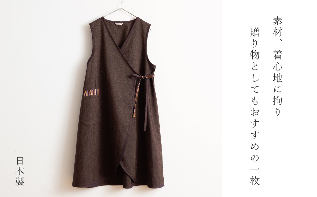 着こむほどに肌になじむ三河木綿を使用した、前合わせのカシュクールエプロン。