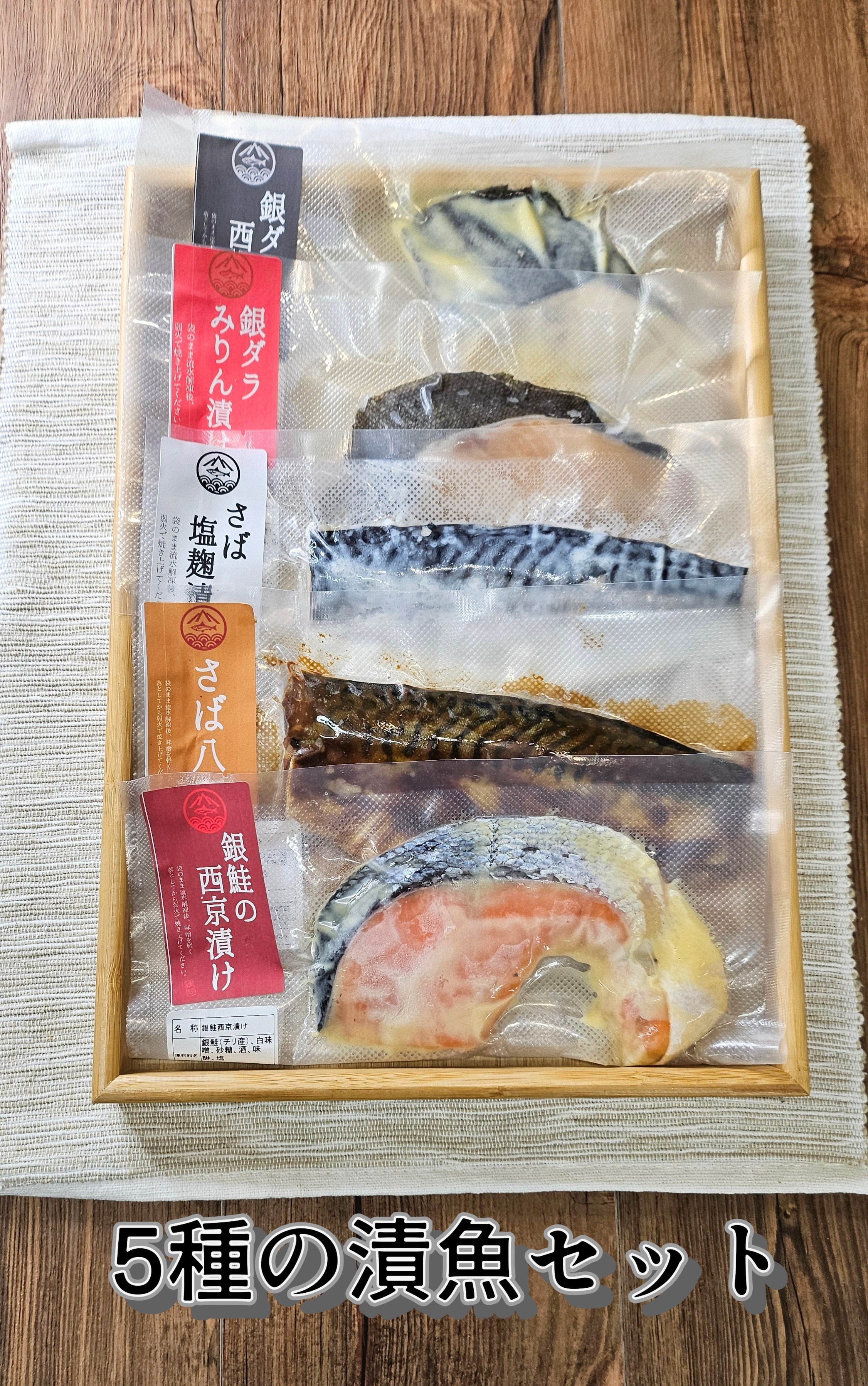 | 容量 | 【内容】 ・サバ八丁味噌漬け 1枚 ・銀鮭西京漬け 1枚 ・銀だら西京漬け 1枚 ・さば塩麴漬け 1枚 ・銀だら三河みりん漬け 1枚 【原材料】 さば・砂糖・八丁味噌・酒・味醂・塩・銀鮭・白味噌・銀だら・塩麴・醤油 |