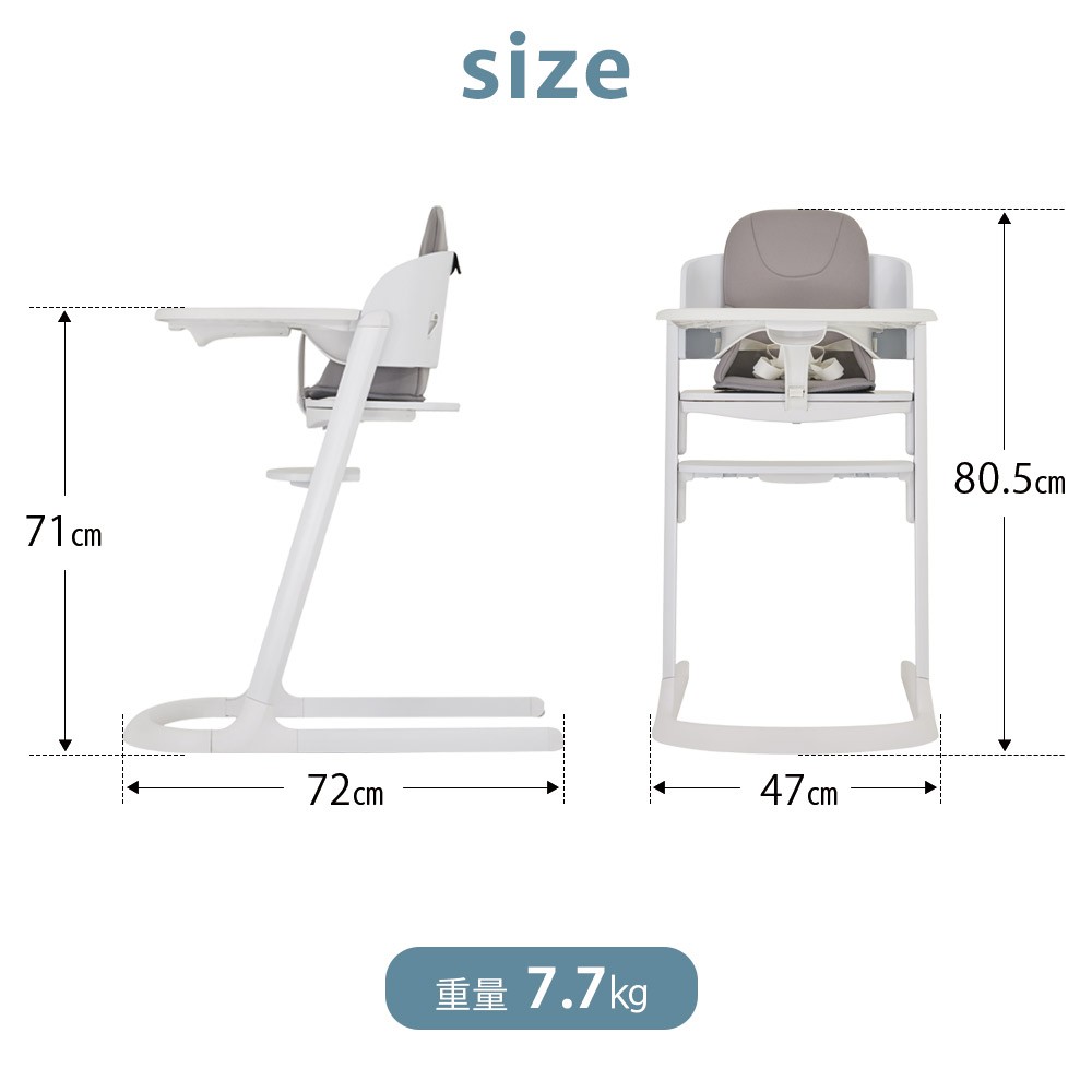 | 容量 | 【カラー】 ホワイト 【本体サイズ】 幅47×奥行72×高さ80.5cm 【重量】 約10.5kg 【素材/材質】 背もたれ、座面、ステップ:ブナ材 トレイ:ポリプロピレン 左右脚部:ポリプロピレン、ポリアミド、アルミニウム シートクッション:ポリプロピレンスポンジ 股ベルト:ポリプロピレン バックル:POM 【使用年齢】 生後7か月〜体重20kg(72か月)まで ※生後36か月(体重15㎏)までは必ずガード、シートベルトを締めて使用。 ※体重20㎏(生後72か月)を超え床に足が着くようになれば、ステップを取り外しての使用可能。(耐荷重110㎏) 【機能】 ベルト付き テーブル着脱可能 座面・ステップ(足のせ)12段階高さ調節 使用の際は、保護者の方が必ず付き添ってください。 ※生後6ヶ月から36ヶ月までのお子様を座らせる場合は、必ずガード、シートベルトを取り付け、座面の高さを最上段にして、座面前後の位置を後方にしてください。 【お手入れ】 ・汚れている部分は、湿らせた布等で拭き取った後、乾いた布等で水分を拭き取ってください。 ・研磨剤、溶剤(ベンジン、シンナー等)は決して使用しないでください。 ・定期的に各部が緩んでいないか、部品が壊れていないか点検してください。 ※サンプルで撮影している商品は、実物の商品とは色味が若干異なる場合がございます。予めご了承ください。 |