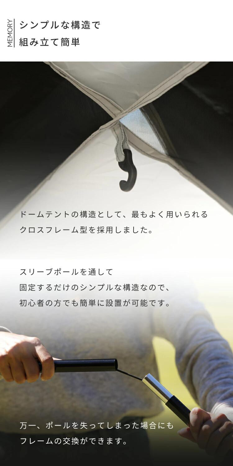 Memoryは通気性、保温性にもこだわったオールシーズン対応のファミリーテントです。