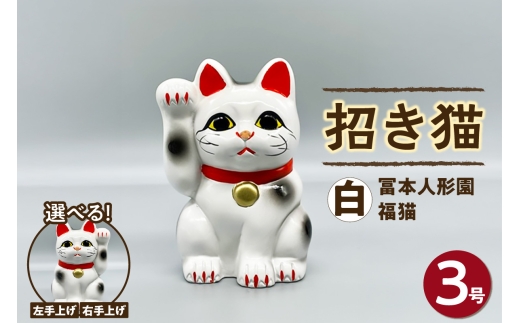 NEW 冨本人形園 招き猫 3号福猫 白(左手上げ/右手上げ)招き猫…