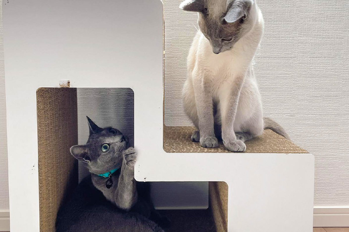 穴が開いたL型ブロック。何個か積み重ねれば猫ちゃん大興奮!