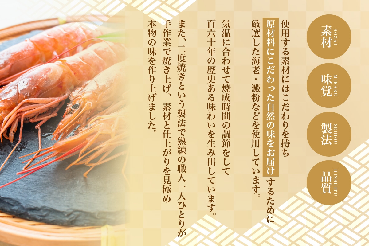 良質の自然の海老をに使い伝承の技と味で一枚づつ丁寧に焼き上げました 【お歳暮 対応可能】海老ごころ