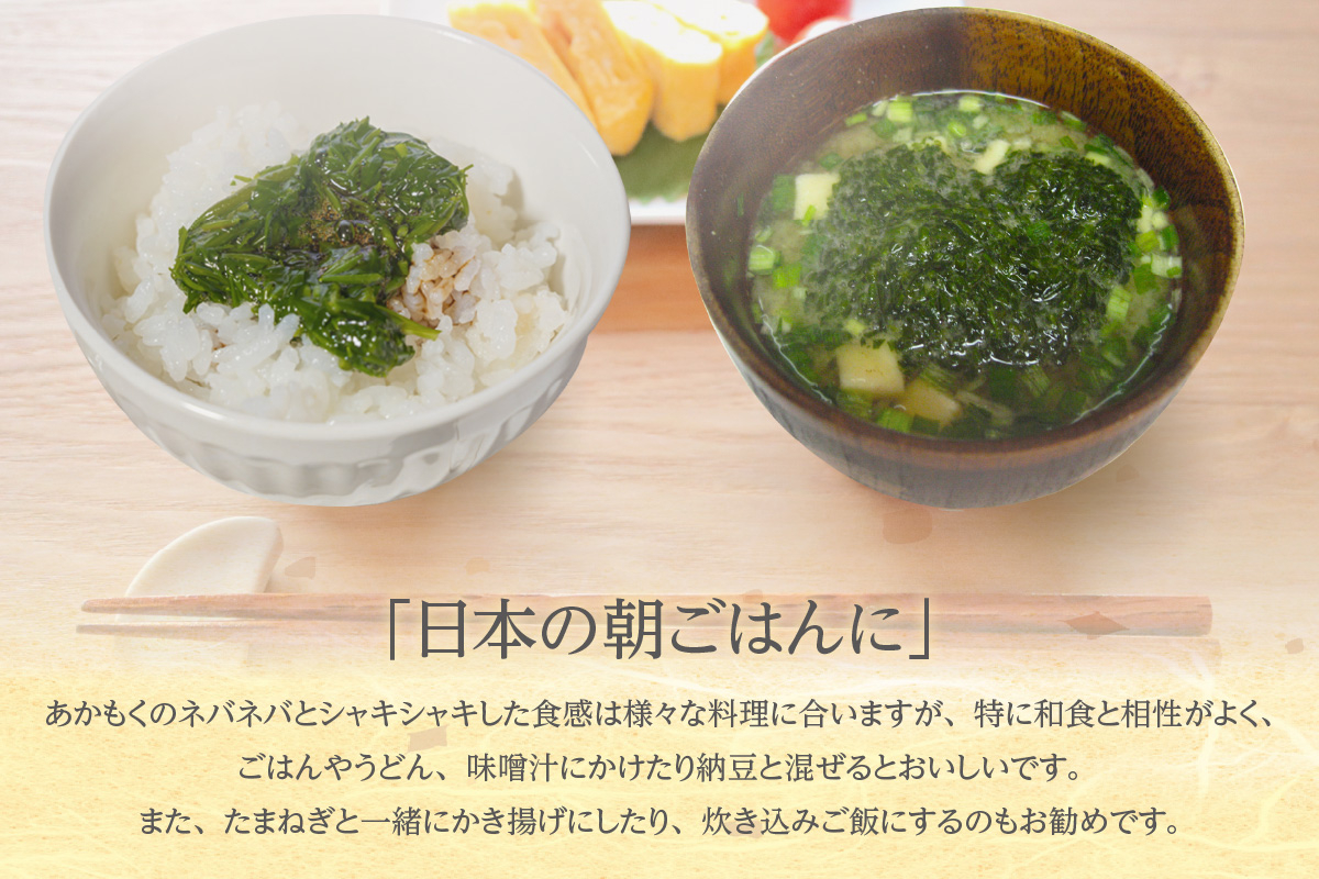 癖のない味わいのあかもくは、どのような料理にもぴったりです。
