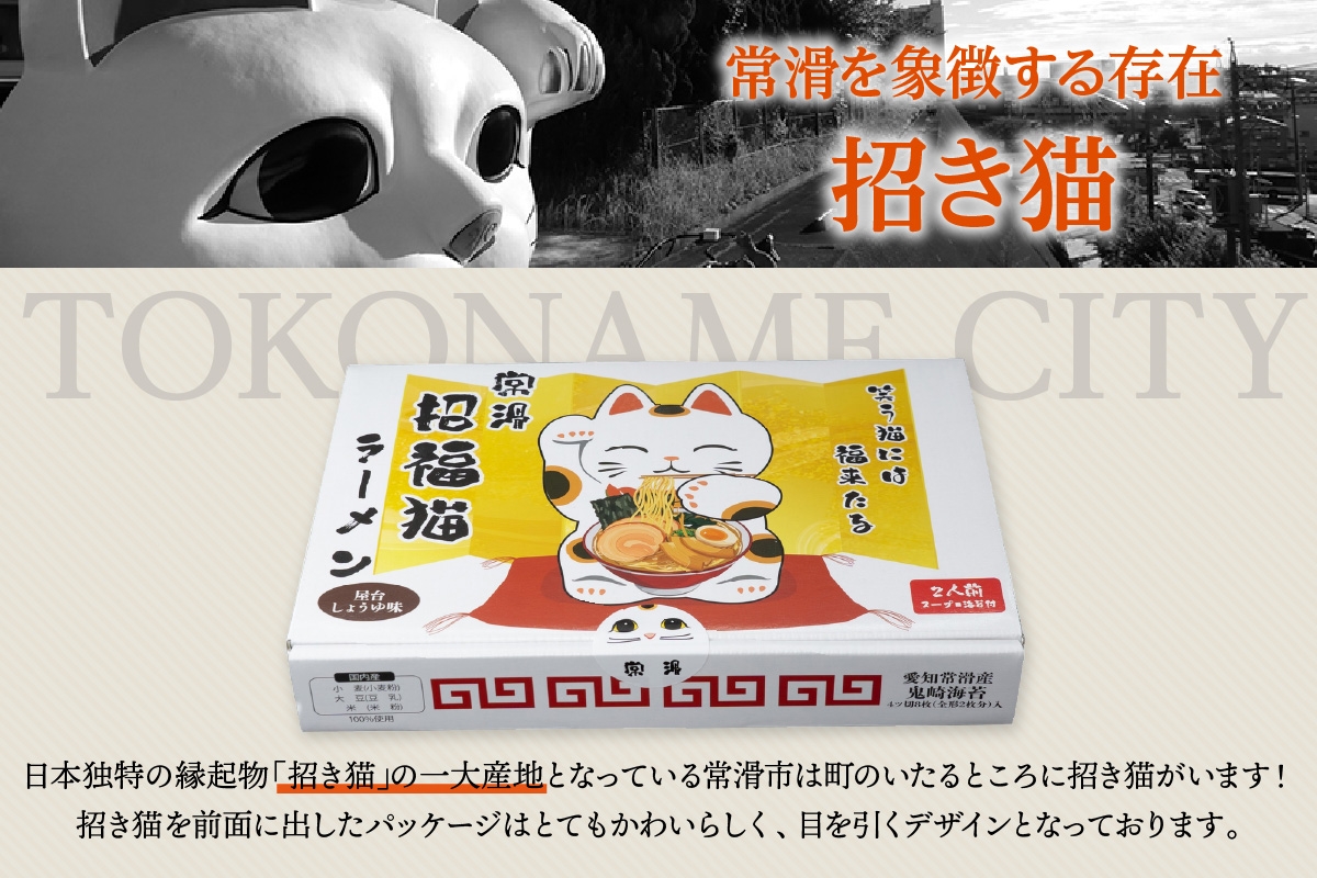 常滑の特産品である「招き猫」と「鬼崎のり」を使用した即席ラーメンです 常滑招福猫ラーメン【2食入×6箱】