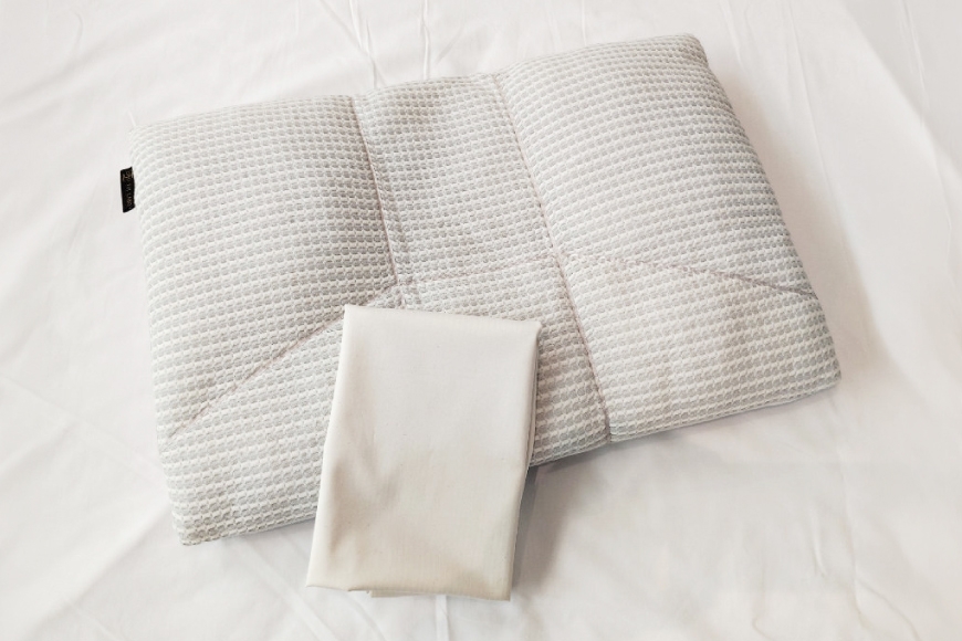 さらに、当店縫製の綿100%手作り枕カバー付き。
