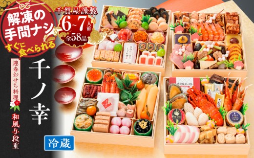 チョイスPayポイントと交換できる品 【千賀屋】毎年多数の高評価!千賀屋で一番人気のおせち 【千賀屋謹製迎春おせち料理】「おもてなし」和風三段重 4~5人前 全58品 冷蔵 2027 豪華8.5寸 3段重 三段重 おせち料理 重箱 お正月 冷蔵おせち 縁起物 祝箸付 年末配送 年内配送 2027年 お節 オセチ oseti osechi 迎春おせち 和風おせち 本格おせち 定番おせち おせち予約 年末 年始 お取り寄せ 贅沢おせち 老舗 ふるさと納税おせち 御節 お節料理 人気
