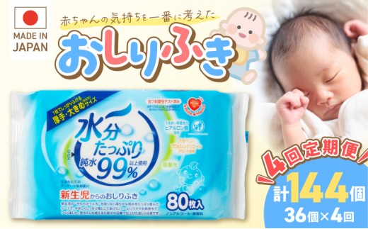 【4回定期便】水分たっぷり純水99% おしりふき80枚入×3P×12セ…