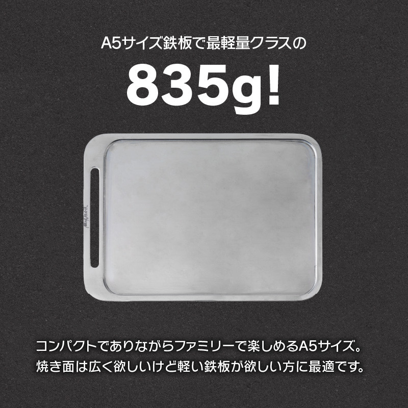 焼き面に3 ミリの溝加工により、油が溢れても垂れにくい縁取りの工夫をした鉄板です。
