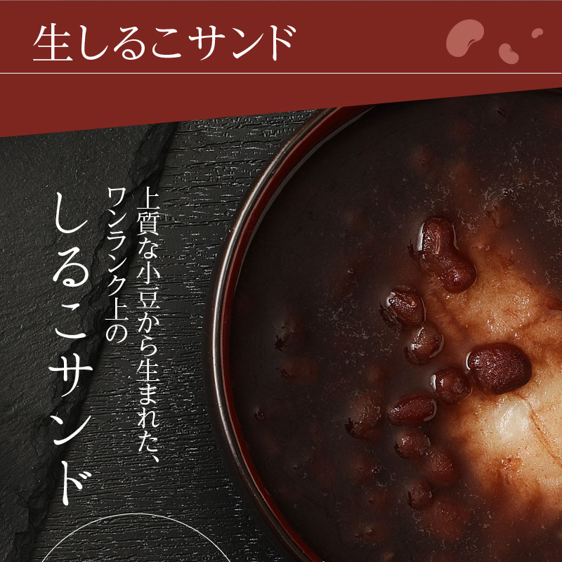 愛知県で半世紀以上愛され続けているしるこサンドの高級版「生しるこサンド」。しっとりとしたビスケットにあんこのクリームが上品な新食感スイーツです。 暑い季節には冷蔵庫で冷やしても美味しく召し上がれます。 和洋折衷の新定番名古屋スイーツは、コーヒー・紅茶・牛乳等どんな飲み物にも相性抜群! 老若男女問わず愛されるしるこサンドの半生タイプをぜひご賞味くださいませ。