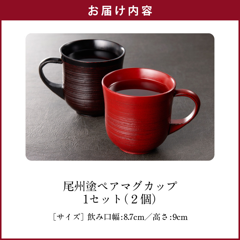 | 容量 | 尾州塗ペアマグカップ 1セット(尾州塗マグカップ 2個) <サイズ> 飲み口幅:8.7cm 高さ:9cm |