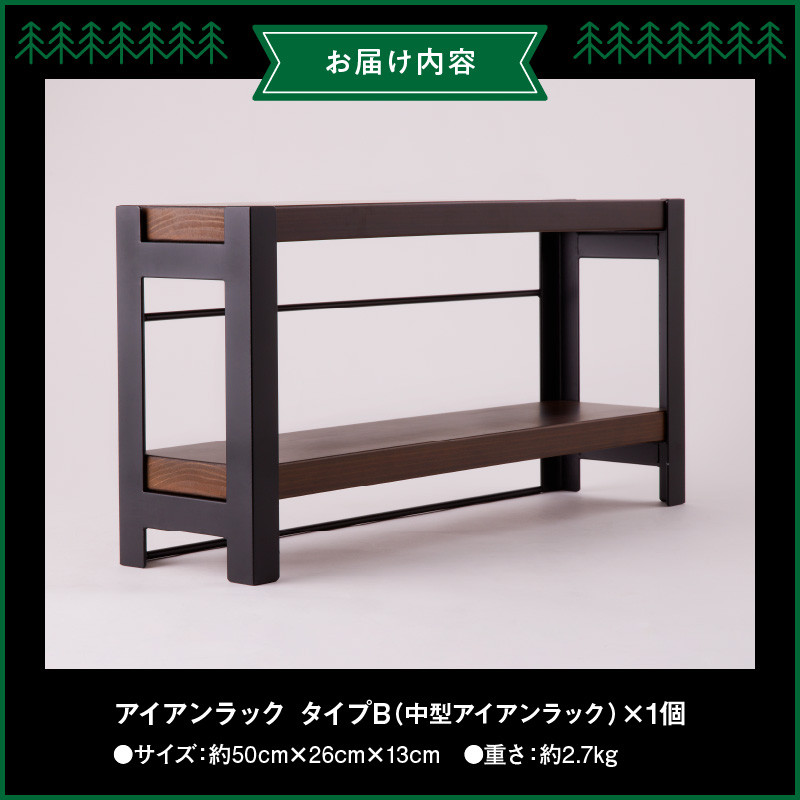 | 容量 | アイアンラック タイプB(中型アイアンラック)×1個 サイズ:約50cm×26cm×13cm 重さ:約2.7kg |