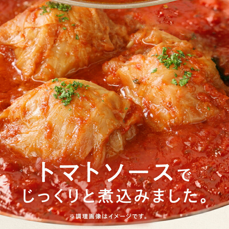 そのロールキャベツを使用し、トマトソースでじっくりと煮込みました。