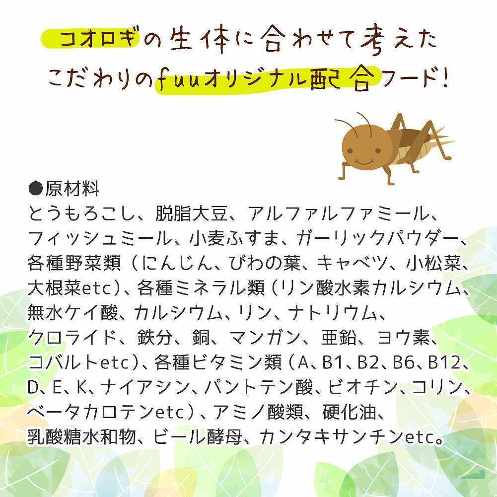 コオロギの生体に合わせて考えたこだわりのfuuオリジナルフードです。