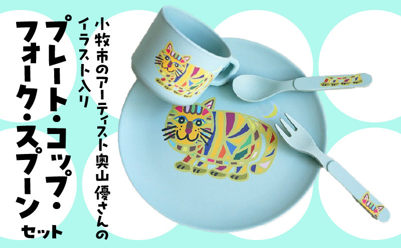 チョイスPayポイントと交換できる品 小牧市のアーティスト奥山優さんのプレート・コップ・フォーク・スプーン セット 小牧市制70周年記念