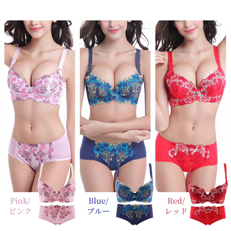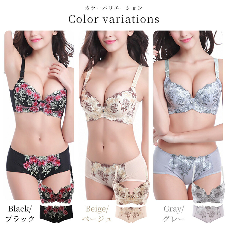 魅惑的なトレンドの刺繍でオシャレ感もありしっかりホールドしてくれるブラとお揃いデザインのショーツ。