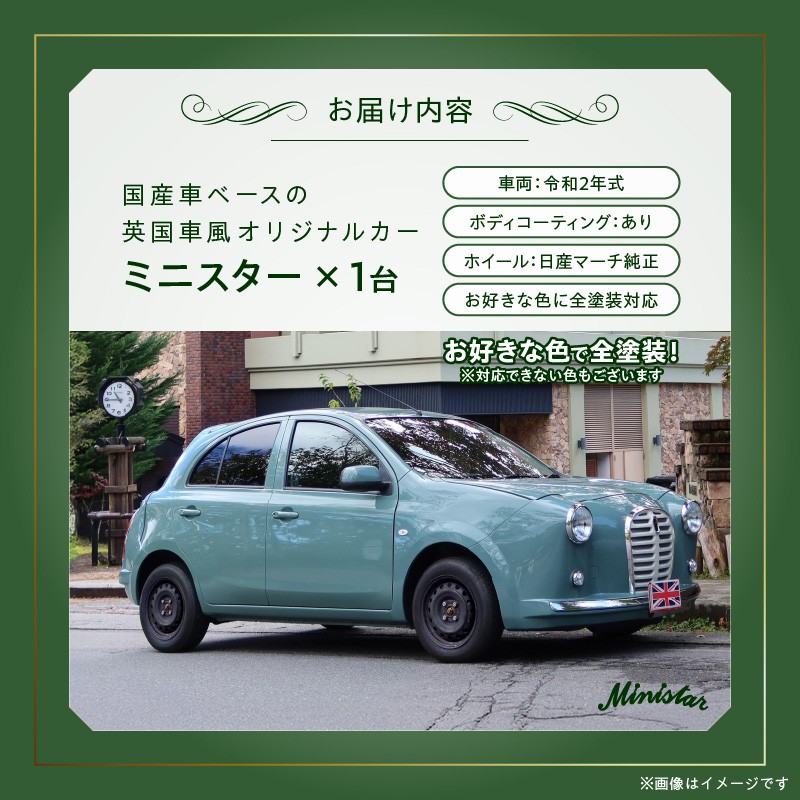 チョイスPayポイントと交換できる品 国産車ベースの英国車風オリジナルカー【ミニスター】お好きな色に全塗装 令和2年式16,523km ボディコーティング:あり ホイール:通常(黒色) カスタムカー レトロ風 自動車 かわいい 車