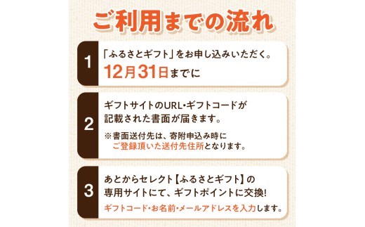 3. あとからセレクト【ふるさとギフト】の専用サイトにて、ギフトコード・お名前・メールアドレスを入力しギフトポイントに交換